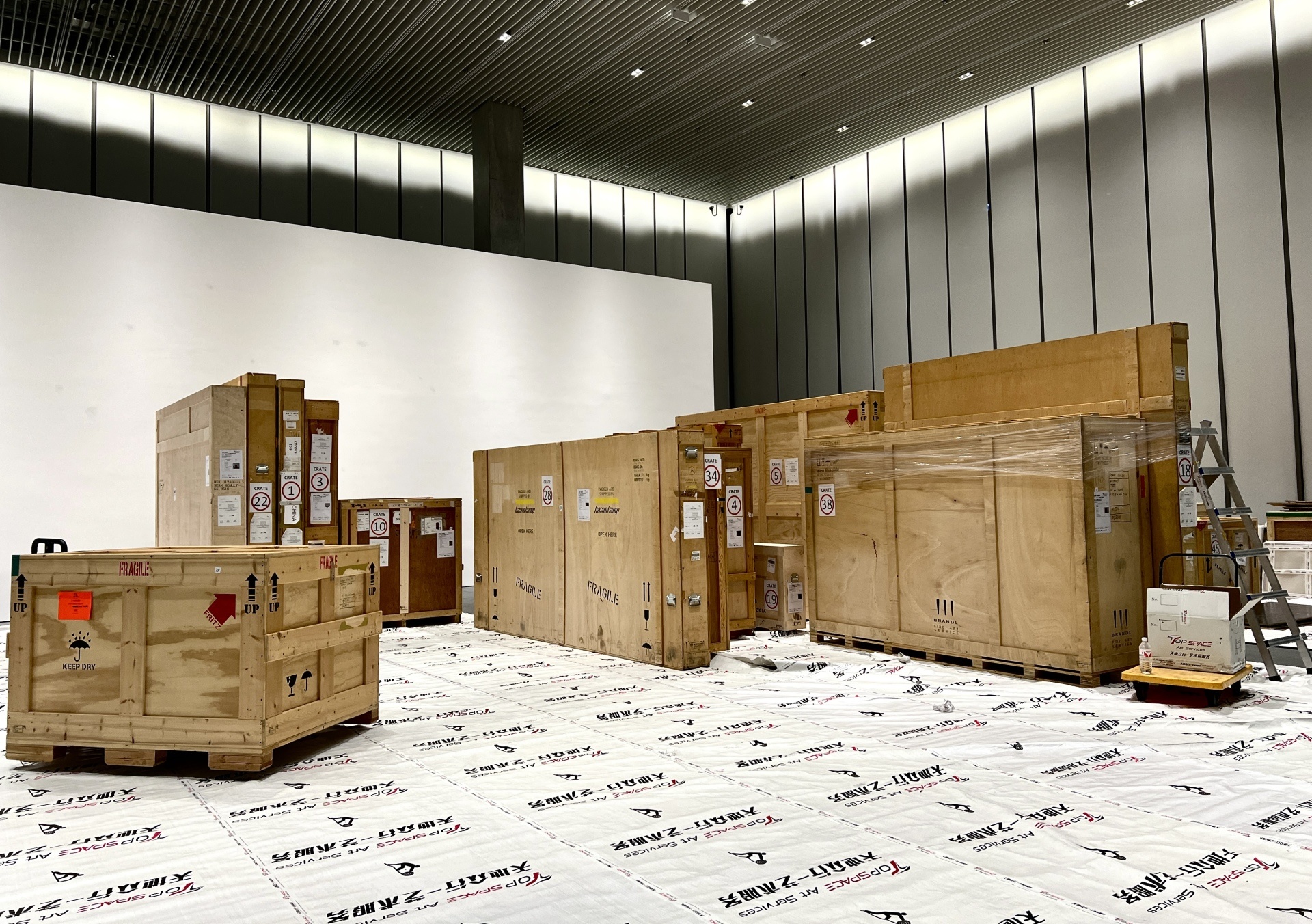 The 41 pieces/groups of classic works on display in this exhibition are from the United States and Germany. Adhering to the concept of safe and fast service, with the strong support and assistance of the customs, our professional team ensured that the exhibits were picked up at the airport and successfully delivered to the temporary storage of our constant temperature and humidity warehouse, and delivered the exhibits to the venue on time, on time and safely according to the exhibition arrangement operation plan.